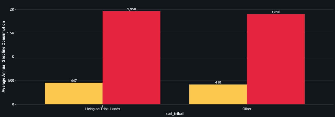 The top 10% of drivers in terms of gasoline consumption, known as "Superusers," consume 35% of all gasoline in the country. Households living on U.S. tribal lands bear a disproportionate share of the national gasoline costs, largely due to higher vehicle miles traveled (VMT), limited vehicle options and lengthy commute requirements. The financial toll of this high gasoline consumption exacerbates existing economic disparities. Electric vehicles provide a potential path forward, with the promise of reduced fuel and maintenance costs.