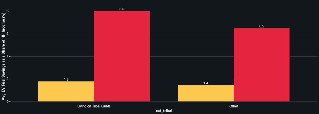 EV fuel savings as a share of household income are higher on tribal lands on average.