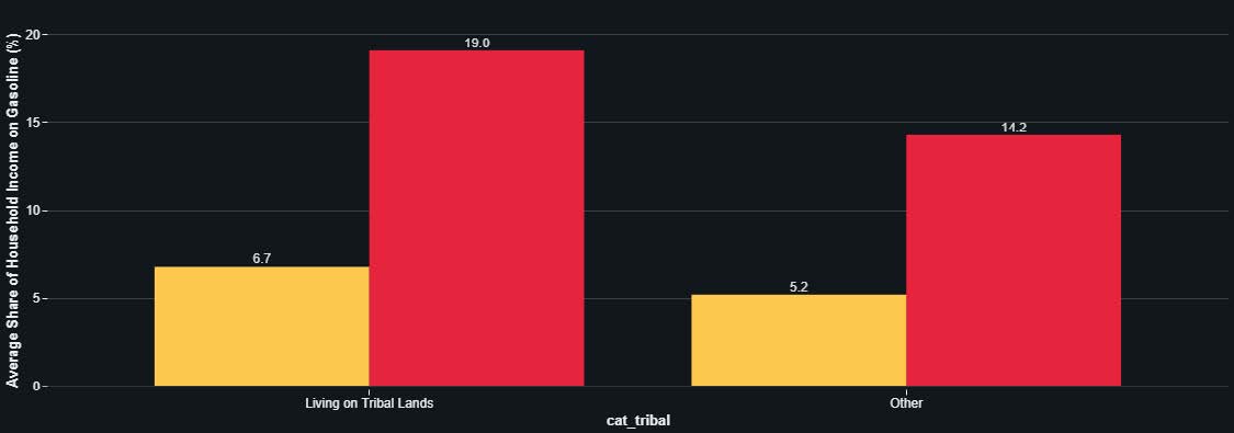 Drivers living on tribal lands in the US who use large amounts of gasoline face a significant financial burden.